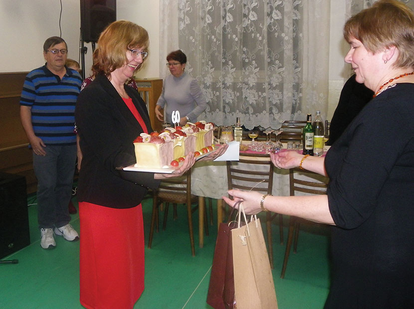 Zaproszeni zostali więc nie tylko członkowie Klubu, ale i inni przyjaciele jubilatki. Nie zabrakło więc przyjaciółki z lat szkolnych, Mariolki, która przybyła z Budapesztu, przyjaciół z ogródka, w którym Renatka spędza każdą wolną chwilę od wczesnej wiosny do późnej jesieni, przyjaciół z osiedla i jej wiecznego studenta języka niemieckiego z małżonką. Urodzinowe spotkanie odbyło się 9 lutego 2019 r. w Centrum Kultury w Trenczynie Kubra i było bardzo udane.