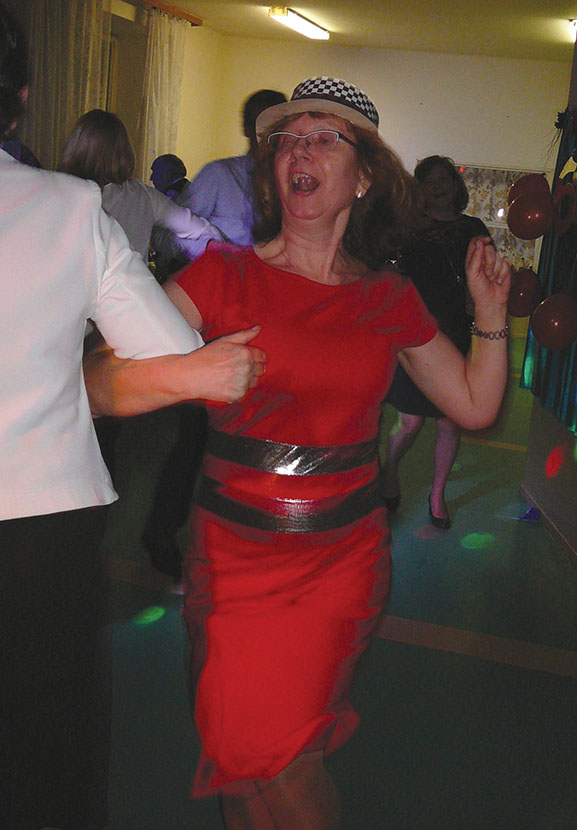 A robił to z takim wdziękiem, że poderwał do pląsów nawet naszą seniorkę Henię. Zabawa trwała do północy, a zakończył je polonez, tańczony pod kierunkiem jubilatki, po którym wszyscy w wesołym nastroju rozeszli się do domów.