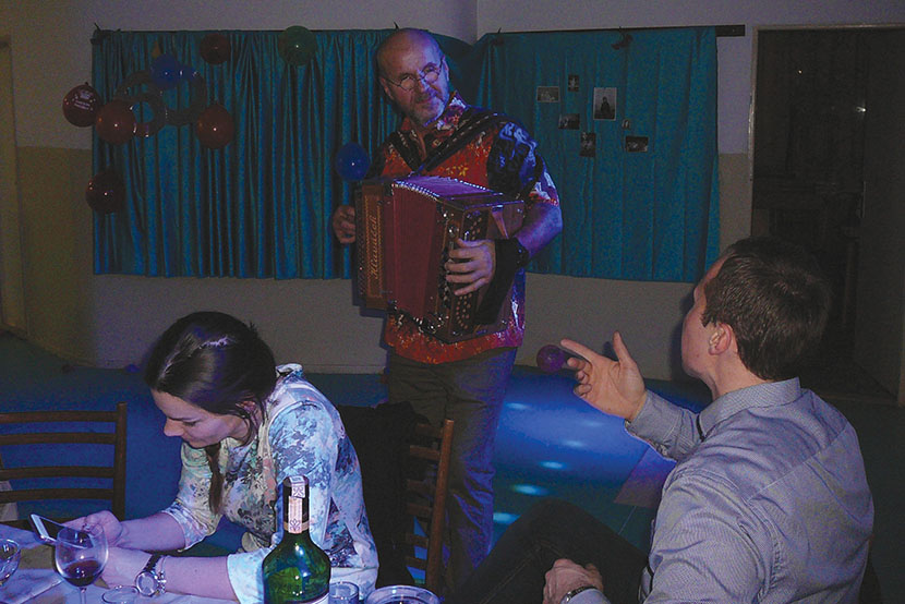 Był taniec jubilatki z każdym po kolei, było karaoke, była sesja zdjęciowa z kwiatami i wspaniałymi tortami, były też śpiewy z akompaniamentem gitary, na której grała Renatka, i akordeonu. To właśnie akordeon, a właściwie Ondrej, kolega jubilatki, przygrywał nam do tańca.