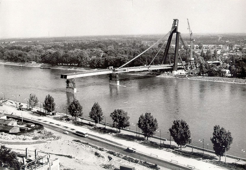 Projekt asymetrycznego mostu ze stali, łączącego Stare Miasto z największą bratysławską (i zapewne również słowacką) dzielnicą mieszkaniową, Petržalką, powstał w pracowni Arpáda Tesára, Jozefa Lacka, Ivana Slameňa i Ladislava Kušníra. Budowa ruszyła w 1967 roku i zakończyła się pięć lat później. Mieszkańcy Bratysławy mogli po raz pierwszy skorzystać z nowego mostu w sierpniu 1972 roku.