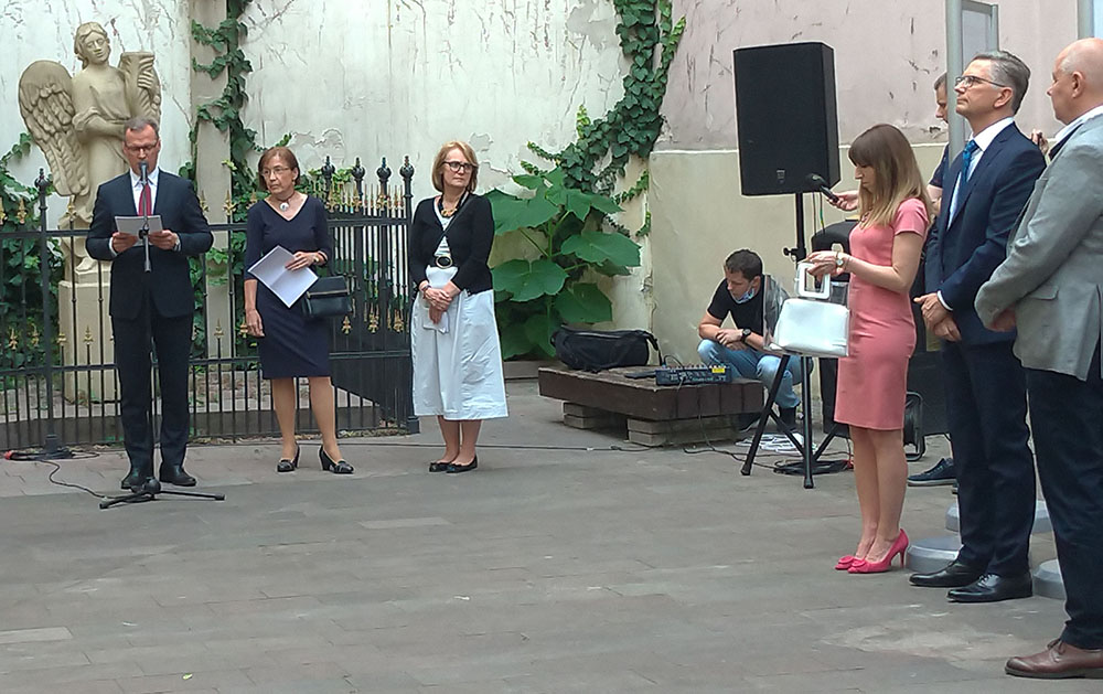 W imieniu władz Bratysławy głos zabrała zastępczyni primatora Bratysławy Ing. Lucia Štasselová. Wystawa na dziedzińcu Pałacu Prymasowskiego wpisuje się w nową politykę władz Bratysławy, zakładającej przywrócenie centralnych punktów przestrzeni miasta jego mieszkańcom.
