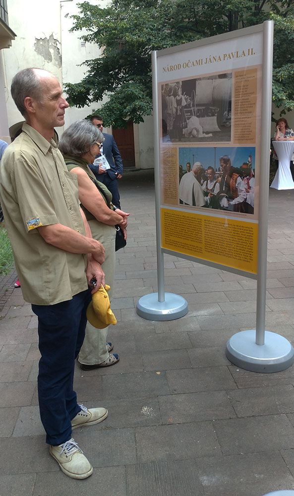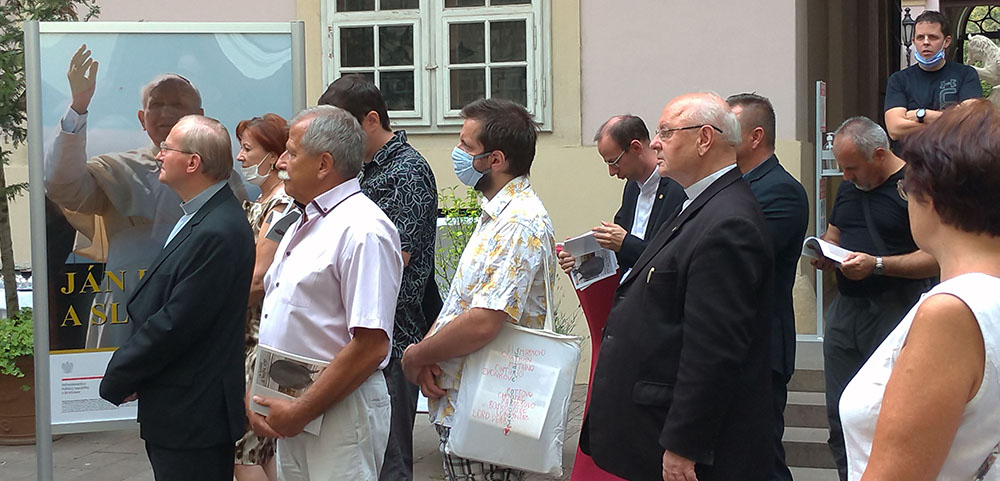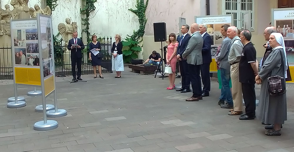 Podkreślając wielki wkład również wierzących mieszkańców miasta w jego rozwój pani Štasselová wyraziła radość miejskich władz z tego, że w tak ważnym miejscu może odbywać się wystawa na tak szczególny temat. Jako ostatni głos zabrał reprezentujący arcypiskupa Zvolenskeho JE biskup pomocniczy archidiecezji bratysławskiej Jozef Haľko. Przypomniał zebranym gościom jakim ogromnym szczęściem było móc towarzyszyć Janowi Pawłowi II – przez wielu uznanym świętym za życia – w jego pontyfikacie i cieszyć się z jego wielokrotnych odwiedzin słowackiej ziemi.
