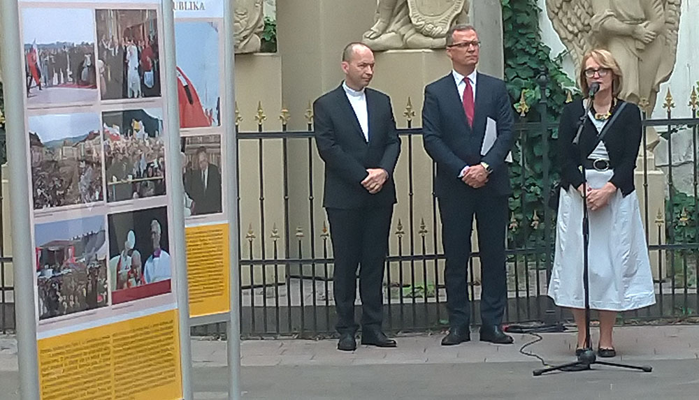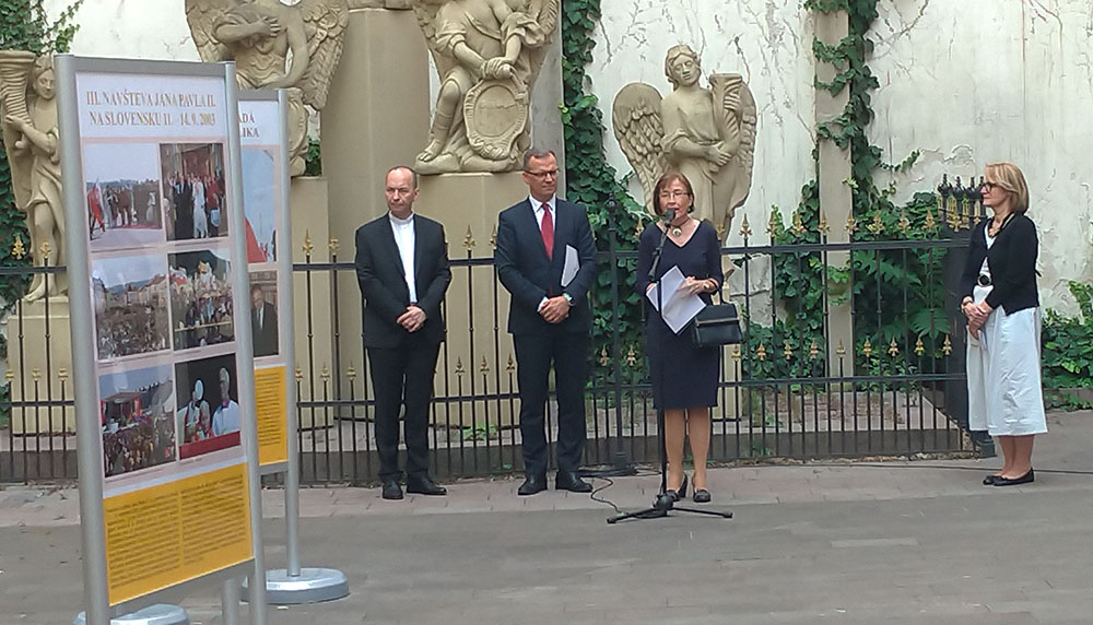 Następnie głos zabrała autorka wystawy, znana historyczka i watykanistka prof. dr. Phil. Emília Hrabovec. Wskazała na ogromną rolę, jaką odegrał Jan Paweł II w przywracaniu godności Słowaków w czasie komunistycznych rządów, podkreślając że sam papież określał siebie „papieżem Słowian”. Jan Paweł II od początku pontyfikatu w widoczny, ale również zakulisowy sposób wspierał słowackich katolików w Czechosłowacji a także słowacką diasporę w świecie, z sukcesem wykorzystując do tego watykańską dyplomację.