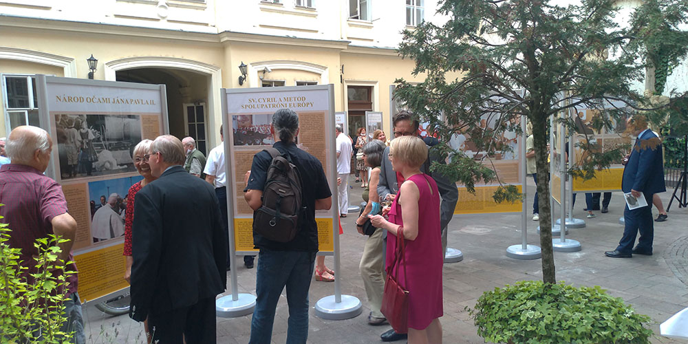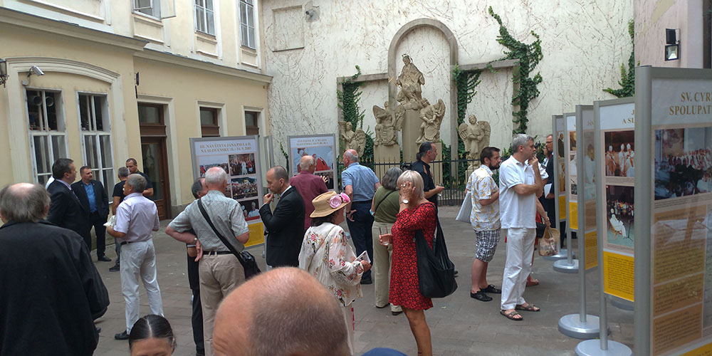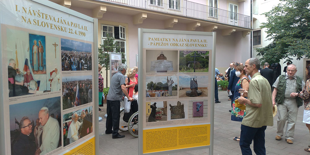 Wystawę można oglądać w zewnętrznych przestrzeniach Pałacu Prymasowskiego (Primaciálny palác), na tzw. dziedzińcu Jana Nepomucena. Podczas uroczystego otwarcia 9 lipca wśród licznie zaproszonych gości nie brakowało przedstawicieli korpusów dyplomatycznych obu krajów, słowackiego i polskiego episkopatu oraz magistratu słowackiej stolicy – wystawę swoim patronatem objął bowiem JE abp Stanislav Zvolenský, JE abp Marek Jędraszewski oraz primator Bratysławy Matúš Vallo.
