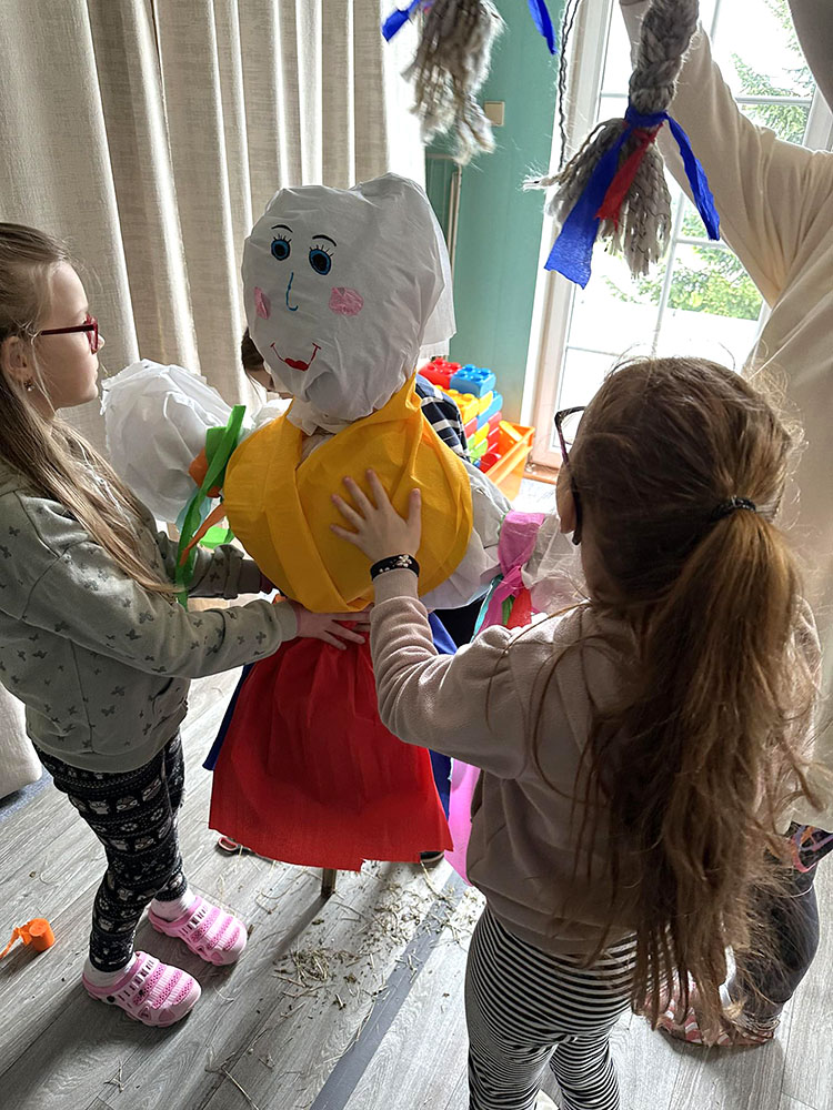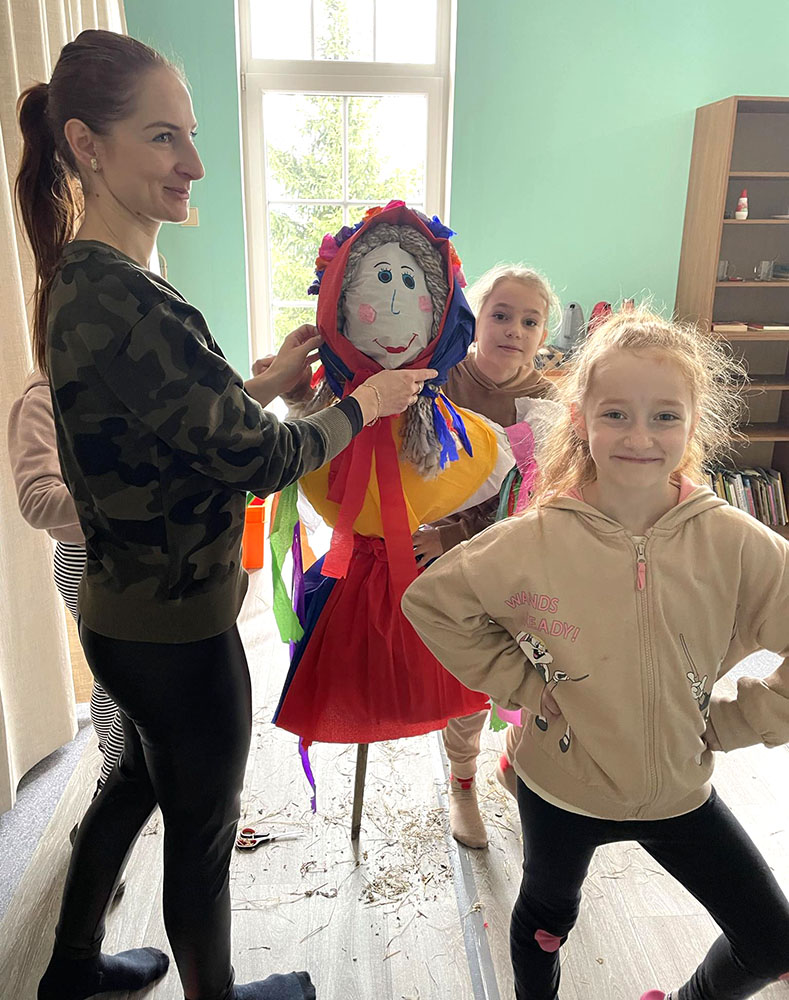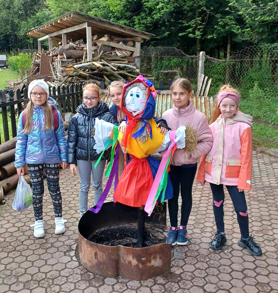 Najpierw dzieci poznały podstawowe słownictwo związane z wiosną, nazwy kwiatów i zwierząt, a później poznały zwyczaj topienia marzanny. Od teorii przeszły do praktyki, tworząc kolorową, pięknie wystrojoną kukłę, by na koniec, już na zewnątrz, ją podpalić i w ten sposób – zgodnie ze słowiańską tradycją – pożegnać zimę i przywitać wiosnę.