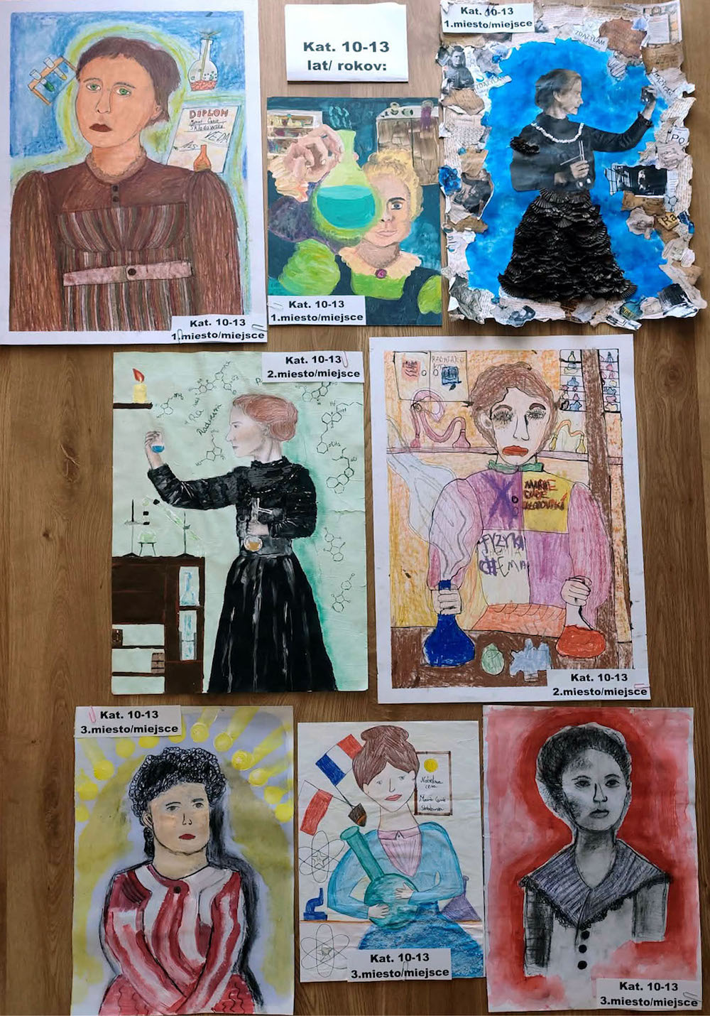- I miejsce: Terézia Plšková (Podstawowa Szkoła Artystyczna im. L. Árvaya w Żylinie) z pracą: Marie Skłodowska- Curie w laboratorium