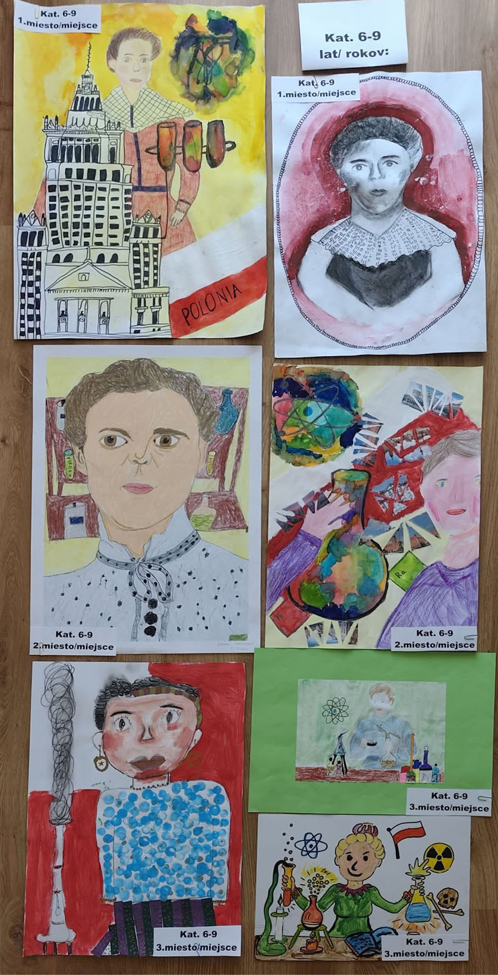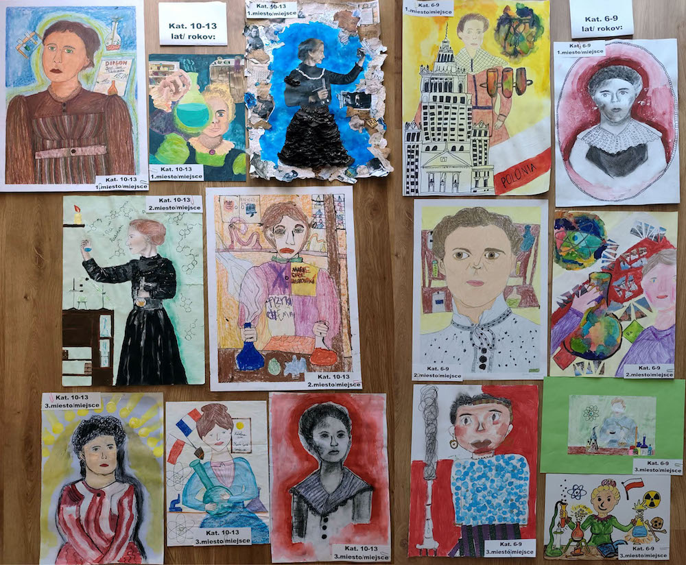- II miejsce: Bianka Sopiaková (Podstawowa Szkoła Artystyczna im. L. Árvaya w Żylinie) za pracę: Maria Skłodowska- Curie w laboratorium